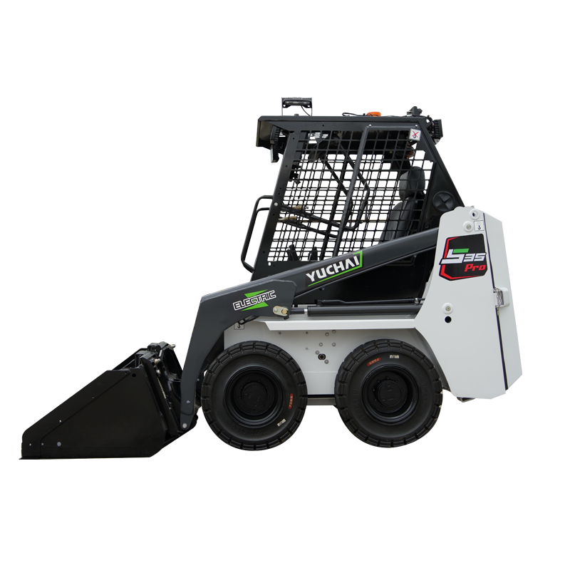 La chargeuse compacte électrique Yuchai S35Pro/S35Max est dotée de la première technologie mondiale d'entraînement du moteur côté roue et AUTO HOLD, garantissant sa stabilité, sa fiabilité et sa sécurité. Sa conception compacte et sa maniabilité exceptionnelle la rendent idéal pour les espaces extrêmement étroits, permettant de naviguer facilement dans les couloirs, les allées, les ruelles et les zones de faible hauteur. Elle peut être équipée de divers accessoires pour des fonctions telles que le chargement, le balayage et le broyage. La version longue endurance S35Max offre une charge rapide en seulement 1 heure, permettant 9 à 11 heures de fonctionnement continu.