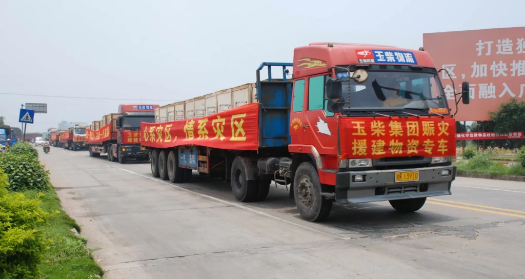 Yuchai a fait don de matériel d’une valeur totale de 12 millions de yuans à la région touchée par le tremblement de terre de Wenchuan.earthquake stricken area